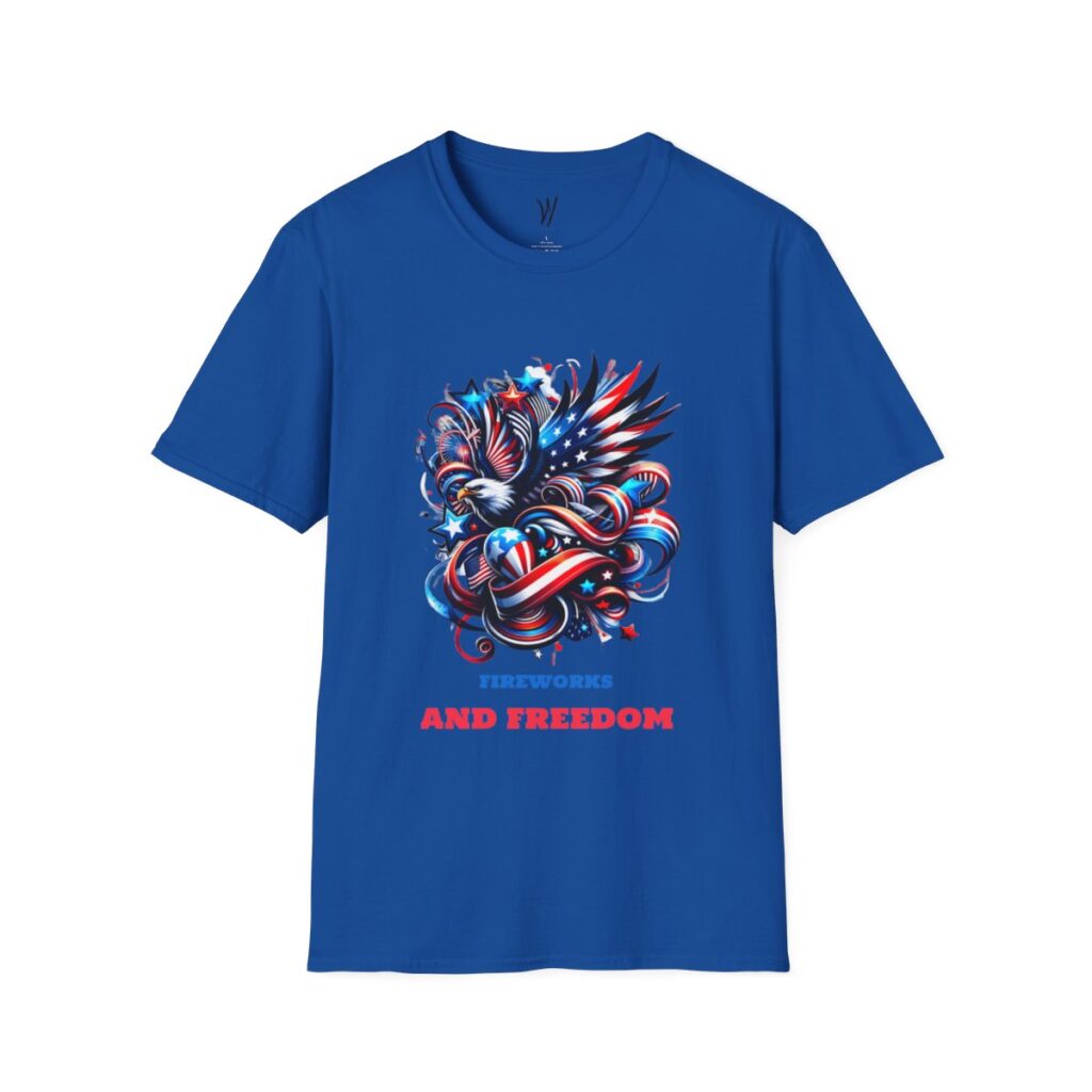 The high-quality print ensures that the patriotic design remains vibrant and withstands regular wear and washing. The tear-away label adds to the comfort by preventing irritation. Available in various sizes and colors to suit your style, this tee is versatile and stylish.