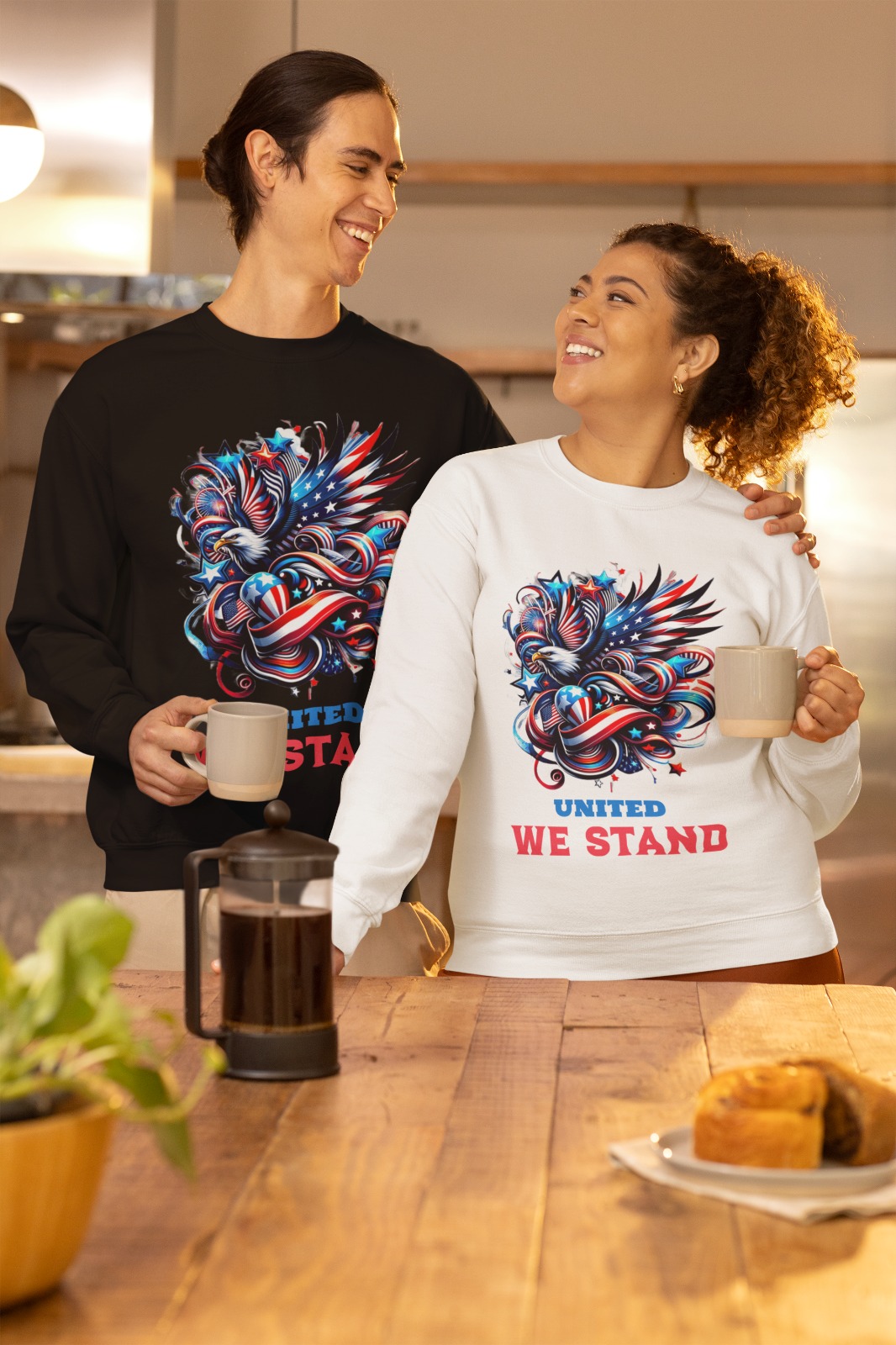 Order now and wear your American spirit proudly with the “UNITED WE STAND” American crewneck sweatshirt. Join countless others in celebrating American unity and freedom with this iconic piece of patriotic apparel.