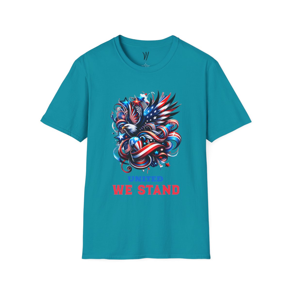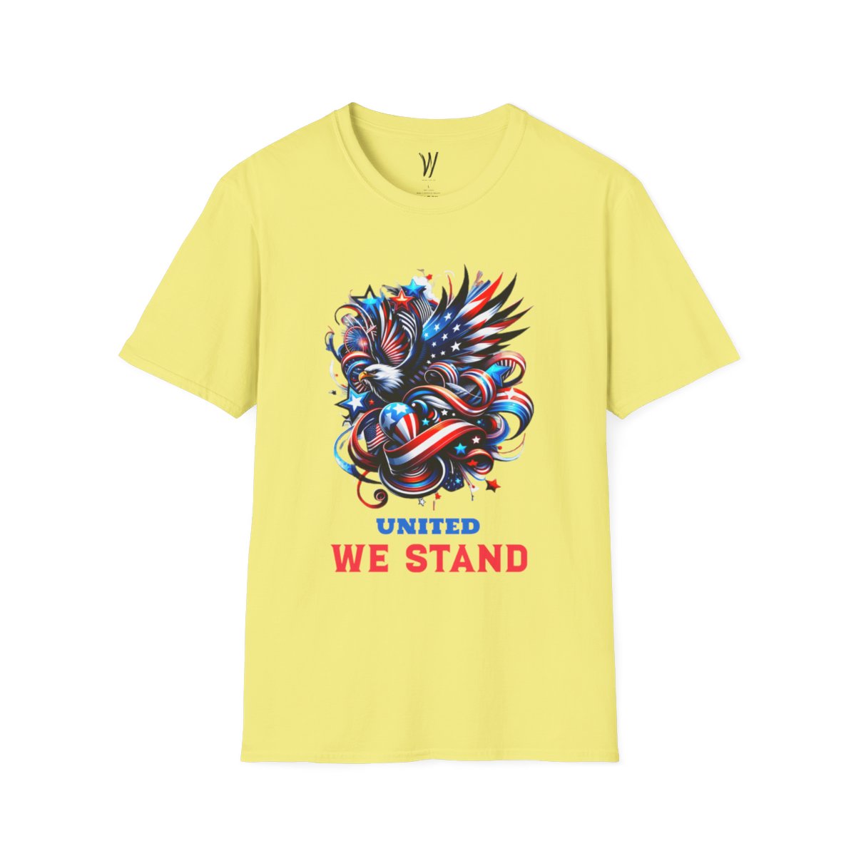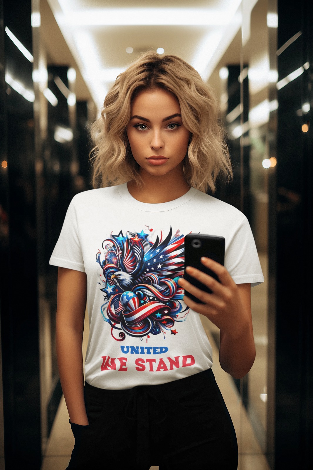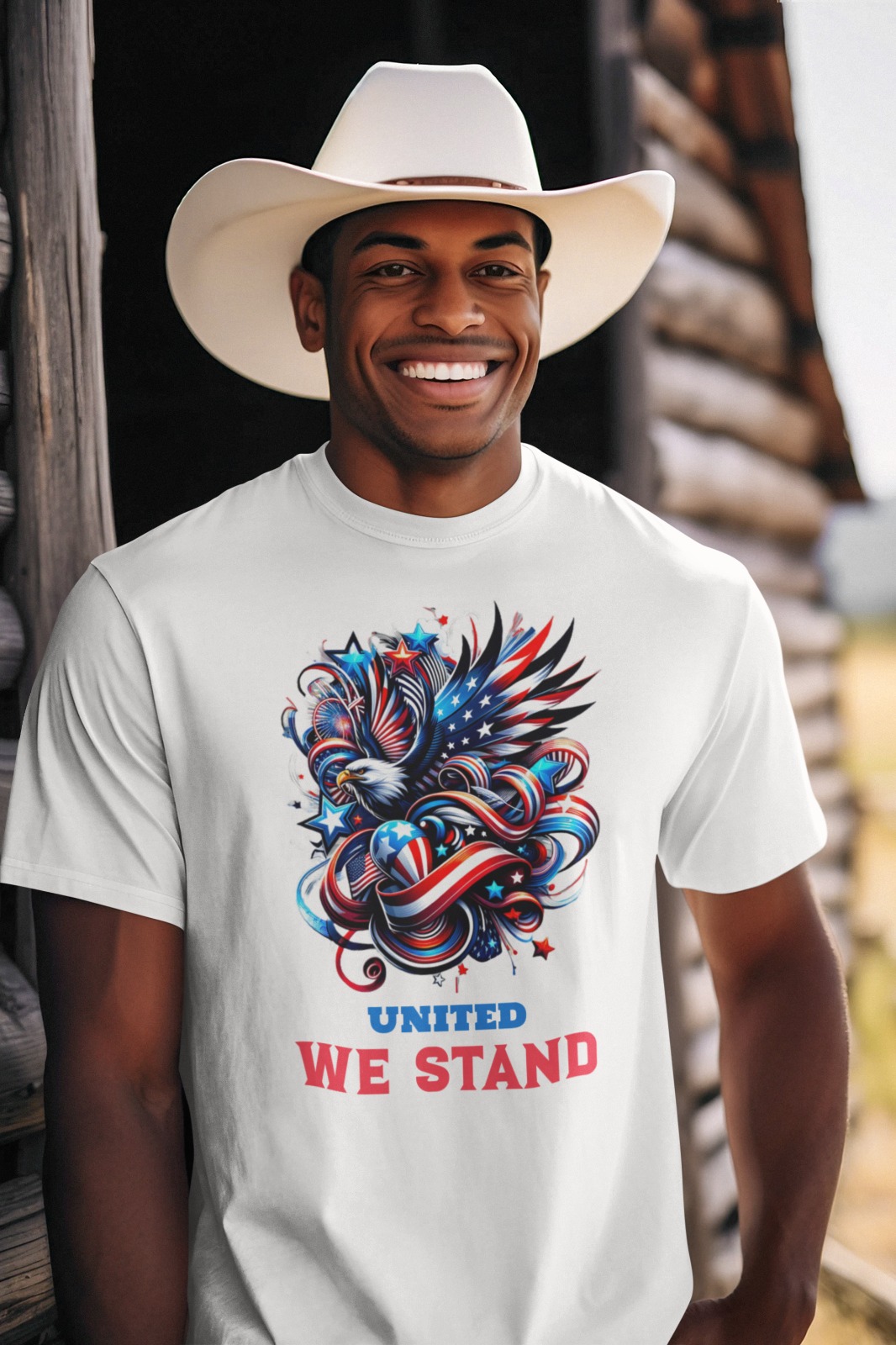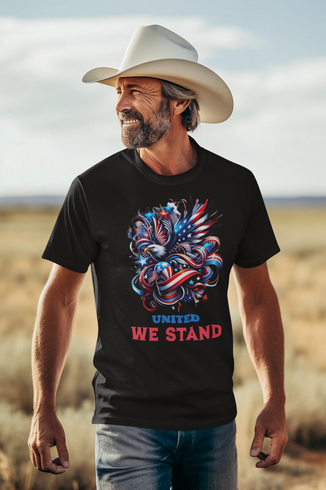 - Bold Patriotic Design: “UNITED WE STAND” message prominently featured.