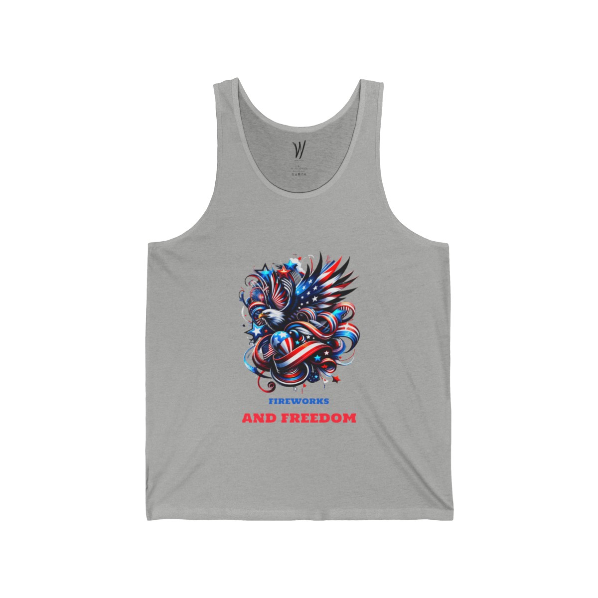American Pride Tank FIREWORKS AND FREEDOM Unisex Jersey Tank