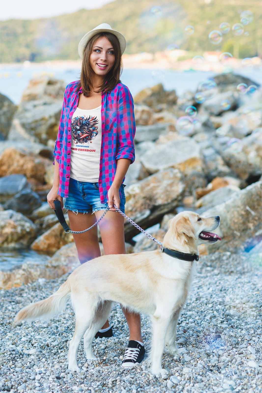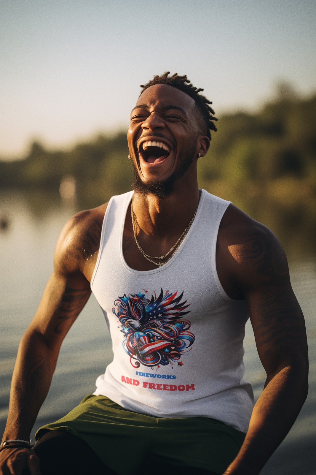 Our “FIREWORKS AND FREEDOM” unisex jersey tank features a bold design that symbolizes unity and freedom. This American pride tank is perfect for showcasing your American pride at any event. Additionally, it stands out in a crowd, making a strong statement about your values.