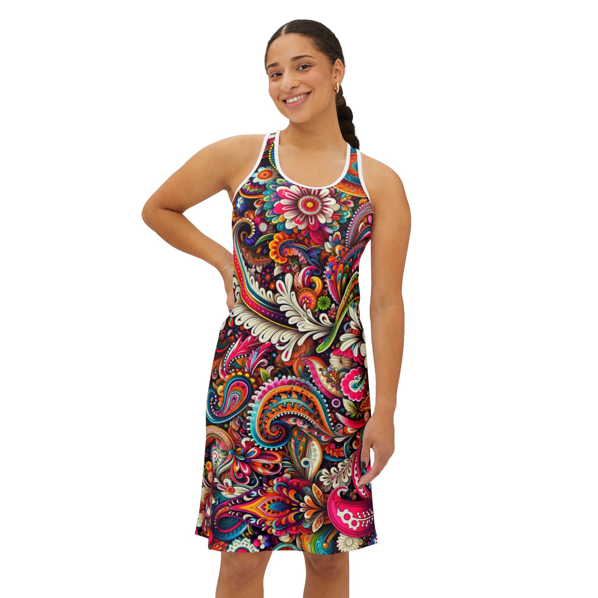 Unveil the essence of timeless elegance with our Floral Paisley Fusion Dress, drawing inspiration from the pattern shown. A mesmerizing blend of florals and paisley swirls in a rich spectrum of colors, this dress captures the romantic spirit of the ’70s with a modern twist. Perfect for those who appreciate the beauty of heritage prints and the allure of classic sophistication.