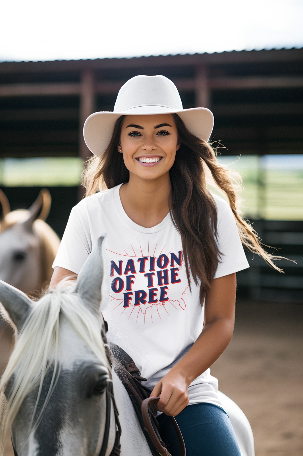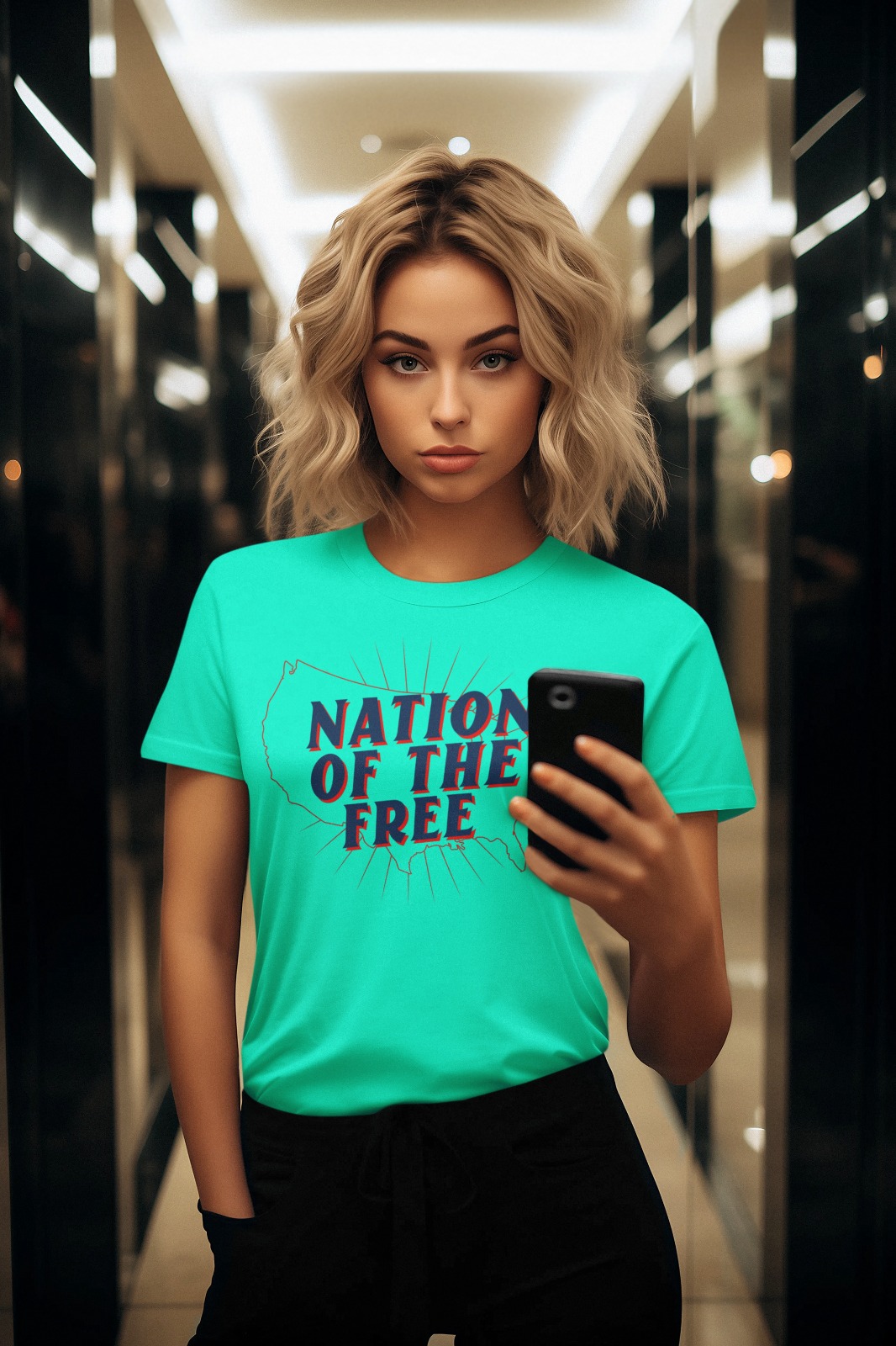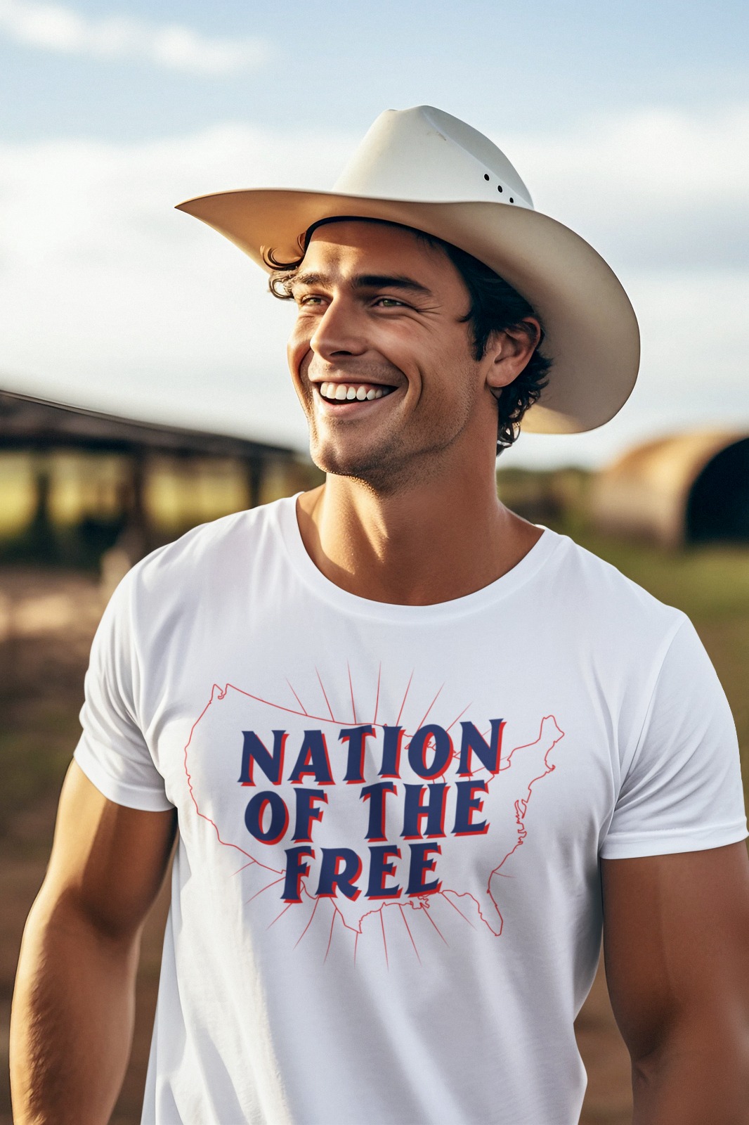 - Bold Patriotic Design: “NATION OF THE FREE” message prominently featured.