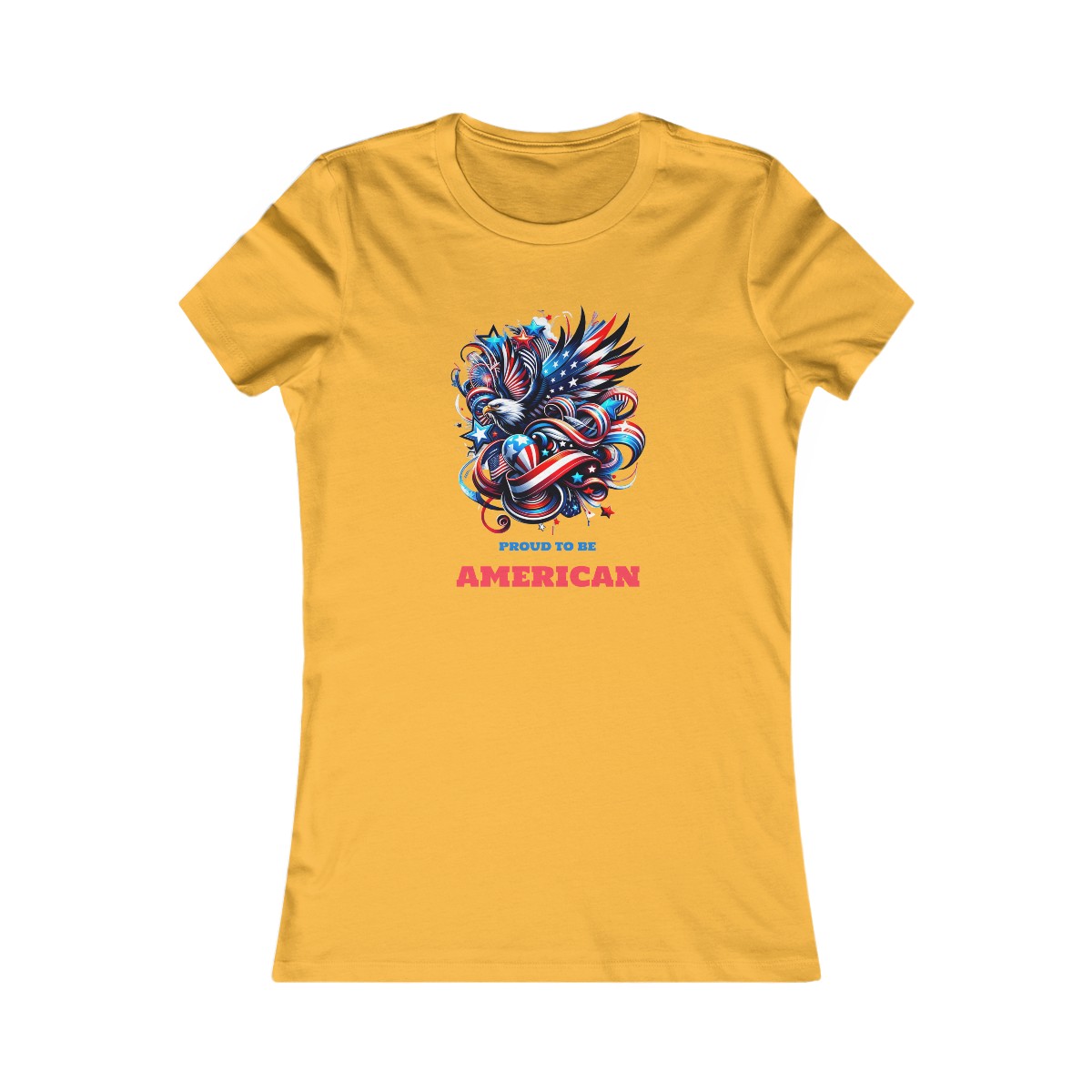 Our “PROUD TO BE AMERICAN” women’s favorite tee features a bold design that symbolizes unity and freedom. This patriotic women’s tee is perfect for showcasing your American pride at any event. Additionally, it stands out in a crowd, making a strong statement about your values.