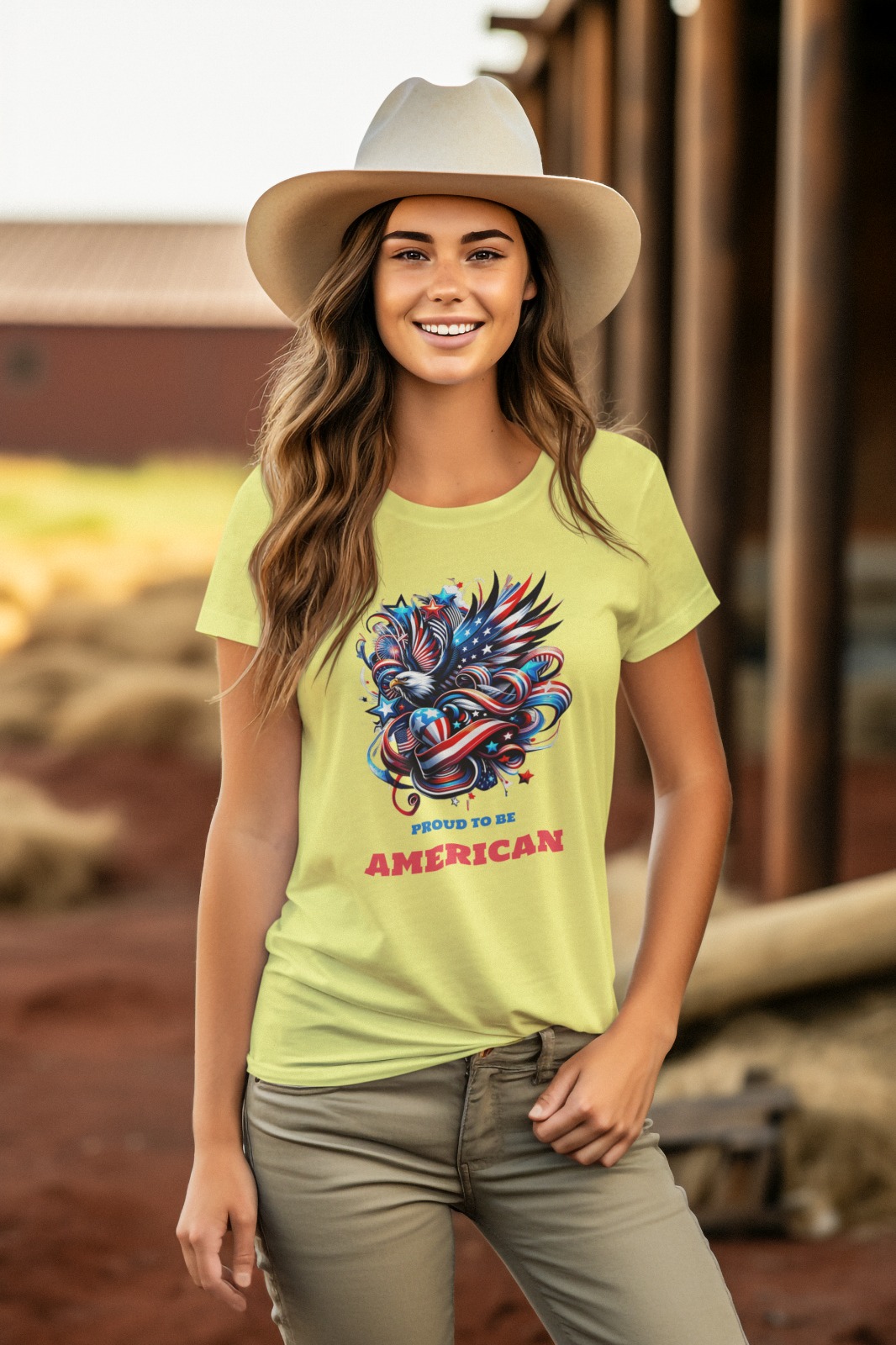 Patriotic Women’s Tee – PROUD TO BE AMERICAN 2024
