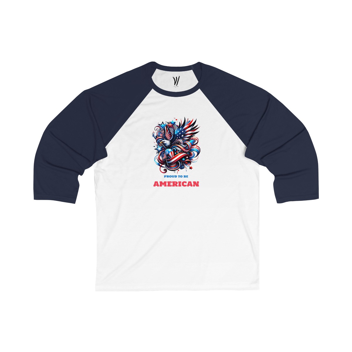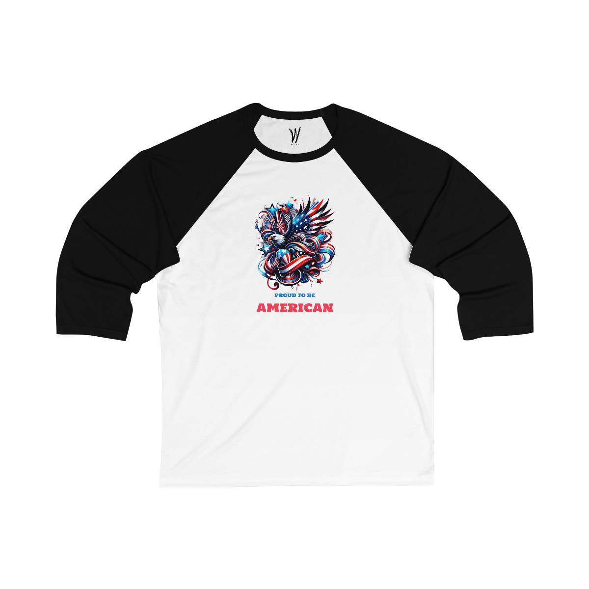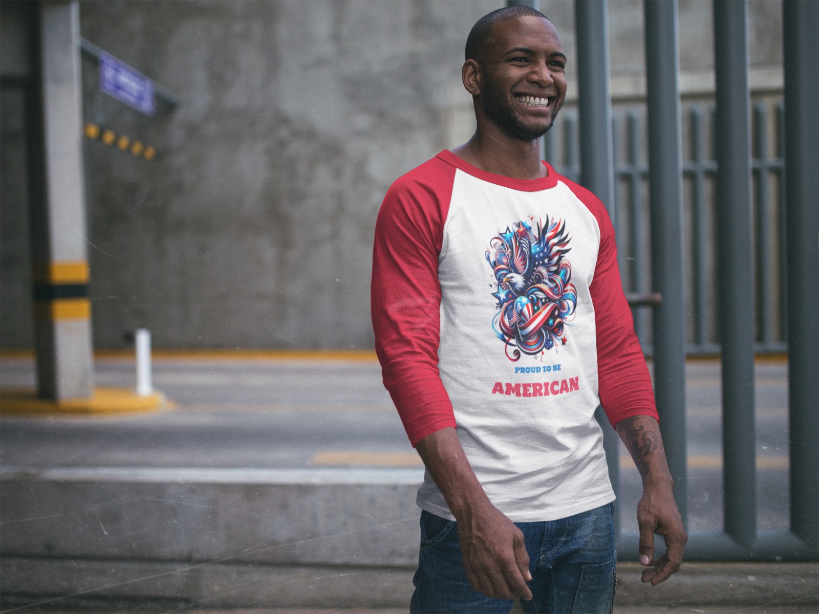 Our “PROUD TO BE AMERICAN” unisex 3/4 sleeve baseball tee features a bold design that symbolizes unity and freedom. This patriotic freedom tee is perfect for showcasing your American pride at any event. Additionally, it stands out in a crowd, making a strong statement about your values.