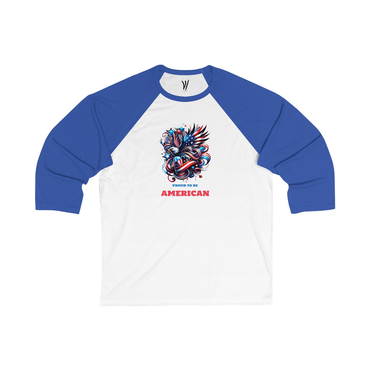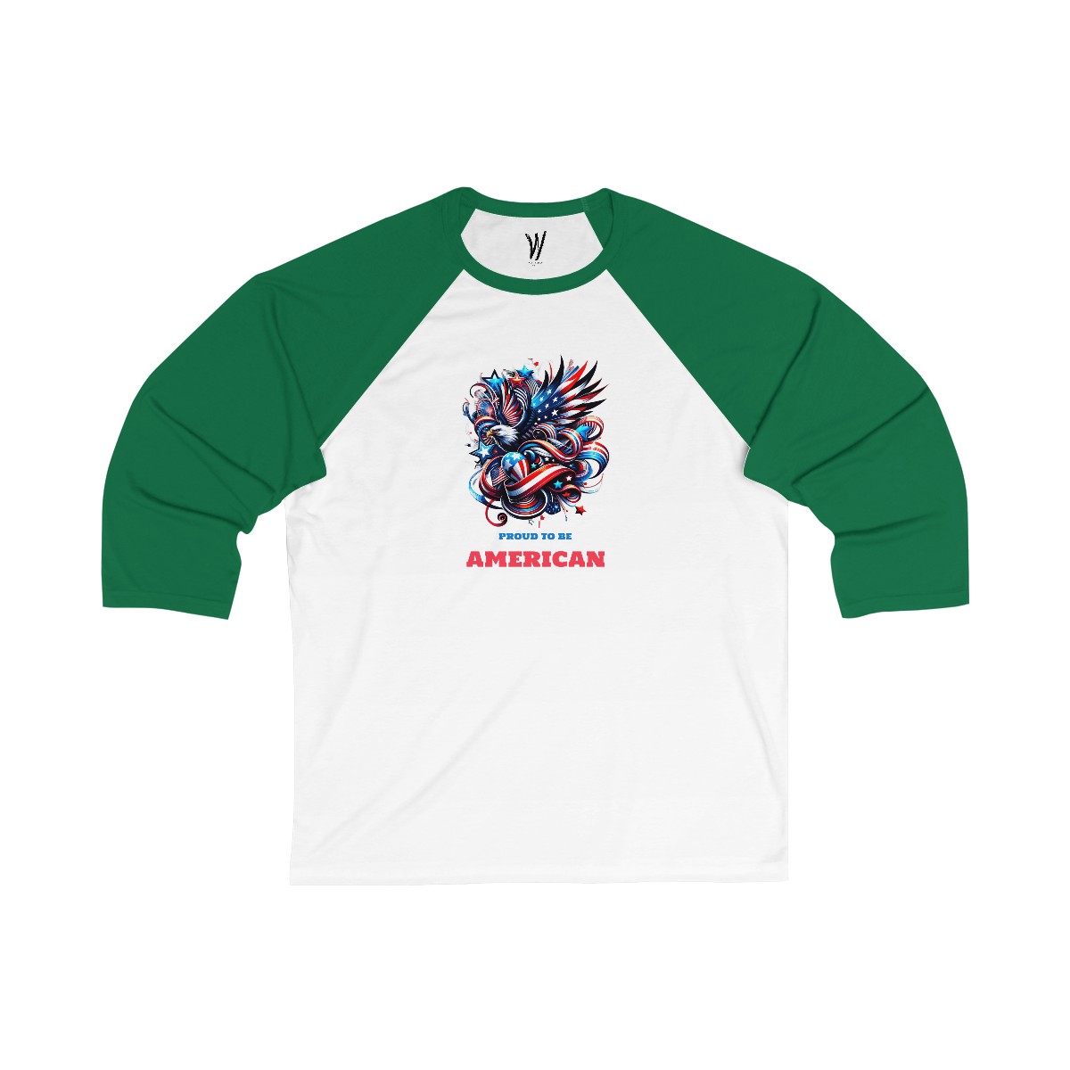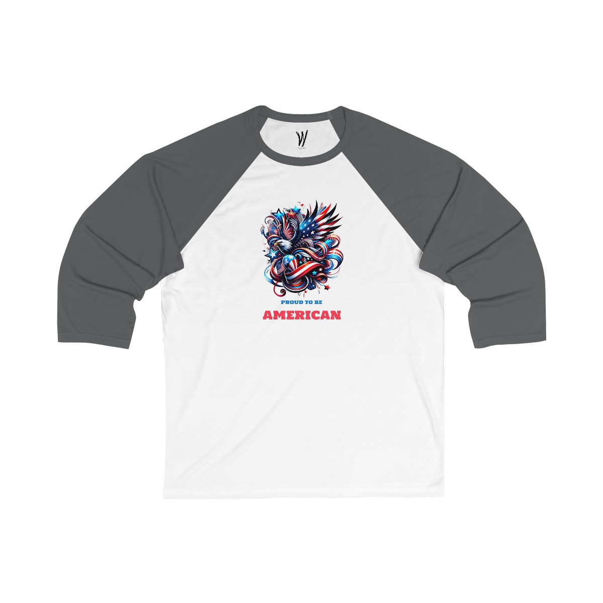 Our “PROUD TO BE AMERICAN” unisex 3/4 sleeve baseball tee features a bold design that symbolizes unity and freedom. This patriotic freedom tee is perfect for showcasing your American pride at any event. Additionally, it stands out in a crowd, making a strong statement about your values.