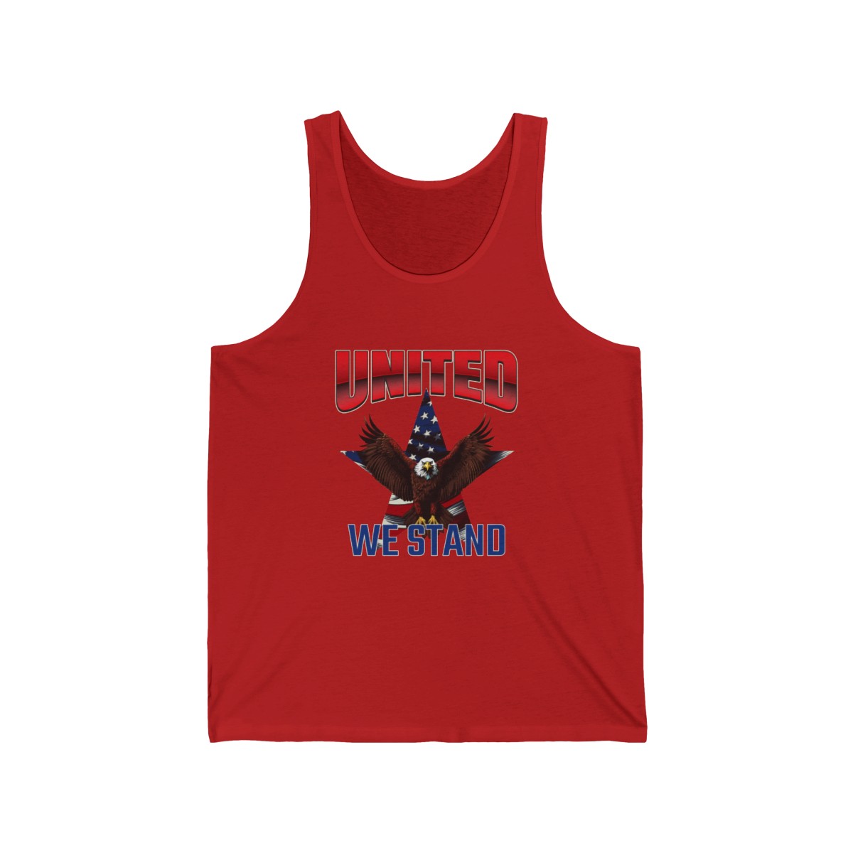 Our “UNITED WE STAND” unisex jersey tank features a bold design that symbolizes unity and freedom. This patriotic jersey tank is perfect for showcasing your American pride at any event. Additionally, it stands out in a crowd, making a strong statement about your values.