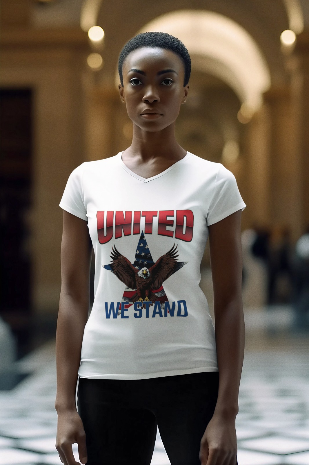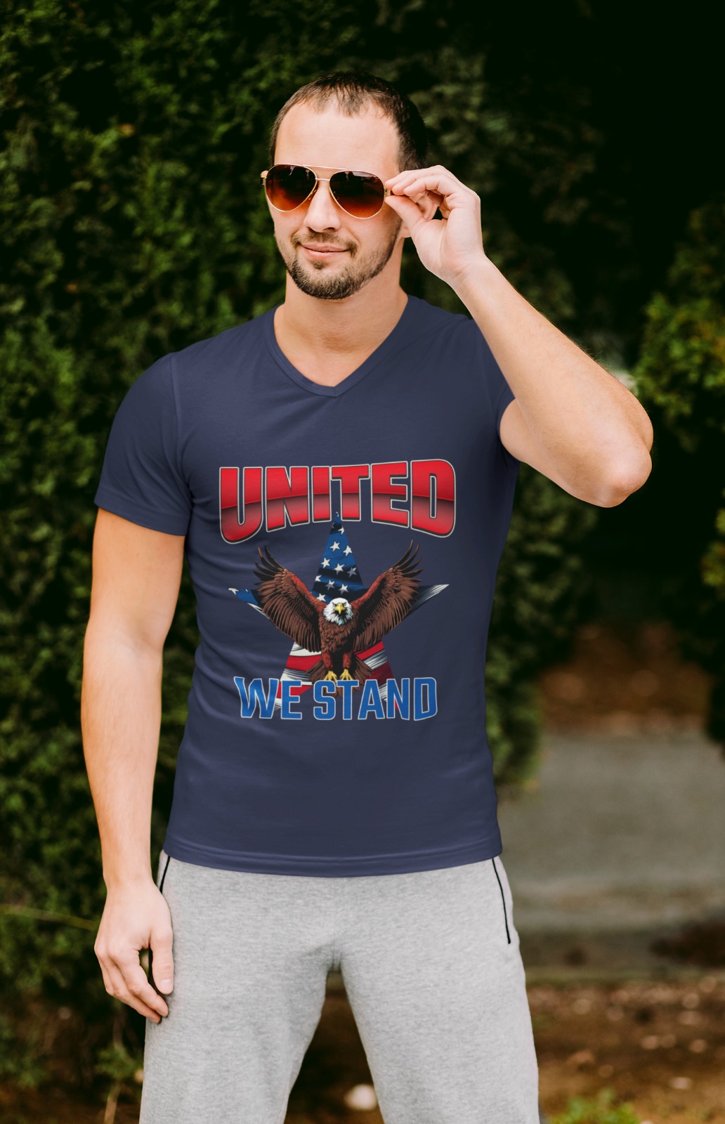 Celebrate unity with our “UNITED WE STAND” unisex V-neck tee. Ideal for holidays or casual wear.