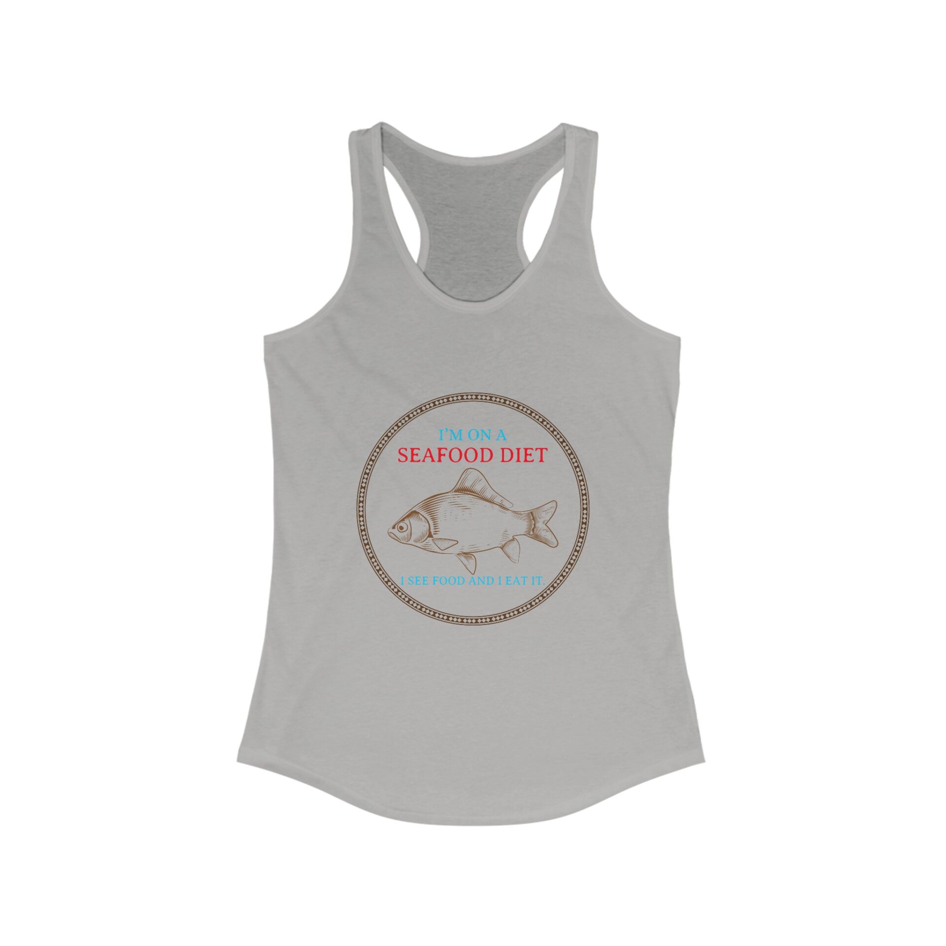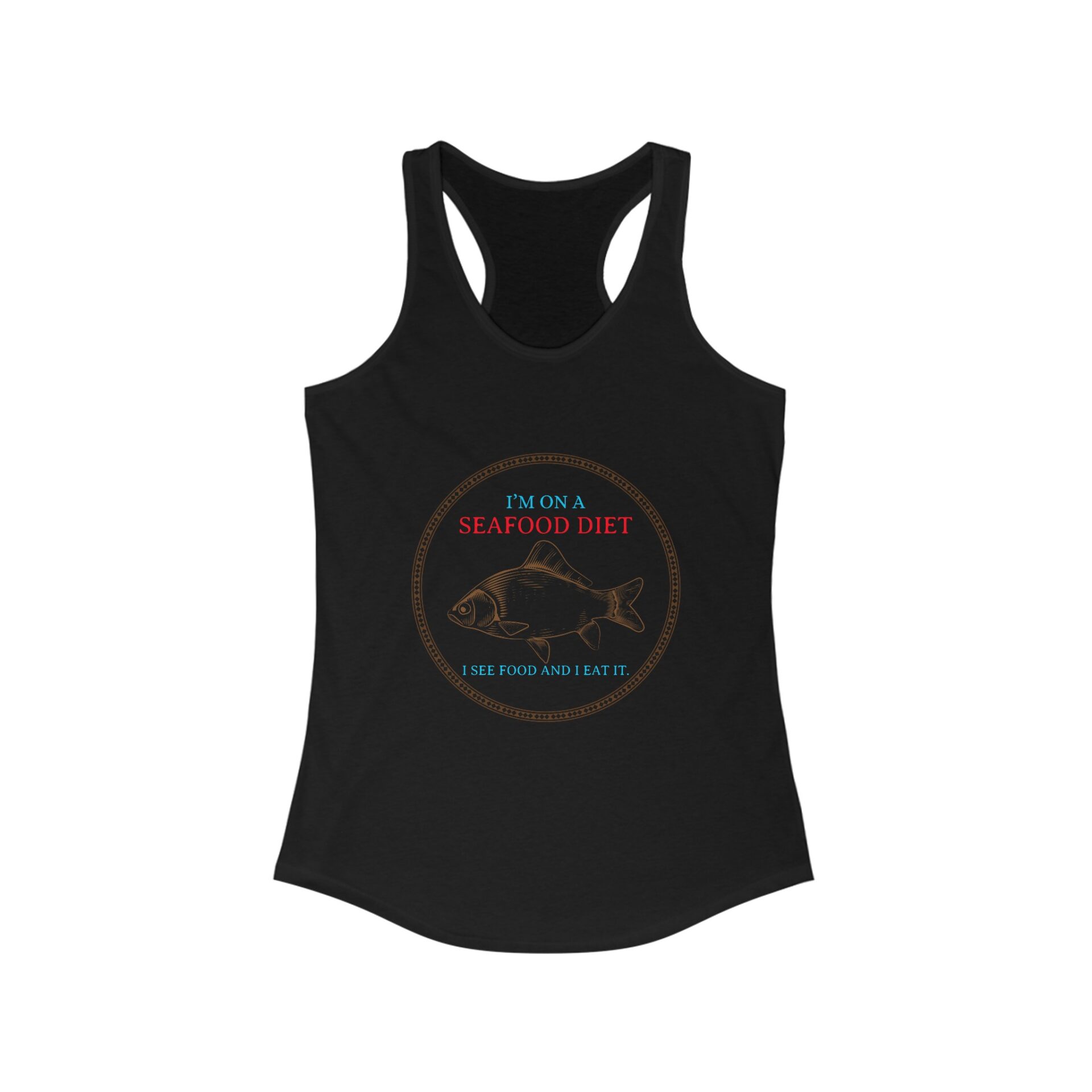 Introducing our Humorous Racerback Tank for women featuring the witty phrase “I’m on a Seafood Diet, When I See Food I Eat,” perfect for active women who love to blend humor with style. Crafted from an ultra-lightweight blend of 60% combed, ring-spun cotton and 40% polyester, this tank is ideal for both high-performance activities and casual wear. The slim fit and racerback cut flatter the shoulders, while the scooped neckline adds a sporty touch. With a tear-away label for maximum comfort, this Humorous Racerback Tank is perfect for gym sessions, runs, or lounging at home.